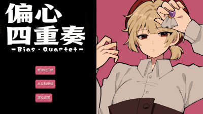 这是名为《偏心四重奏》的文字冒险游戏。 如果这是你第一次游玩,建议从“新游戏开始”以完整体验剧情。“从存档继续”适用于之前有游戏记录的玩家,以便接着之前的进度游玩。请在“游戏设置”中根据喜好调整音量、画面或字幕等选项。