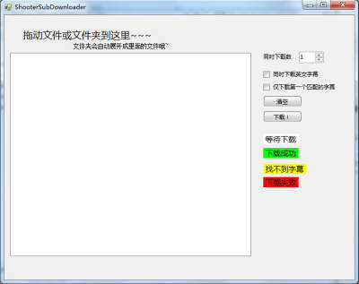 喜欢看美剧练习英语的朋友们刚开始可能跟不上英文字幕的速度,将这些字幕从视频中下载下来慢慢练习可以更快的掌握它们。射手网字幕下载器(ShooterSubDownloader)是一款用来自动匹配并下载字幕的小工具,只需将文件拖入界面就可以自动下载字幕。