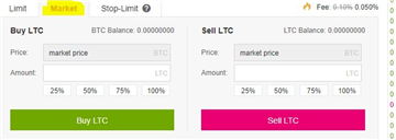 8.最后,要完成交易,请点击绿色的BUY LTC。当您选择Market时,您的订单应在几秒钟内完成!