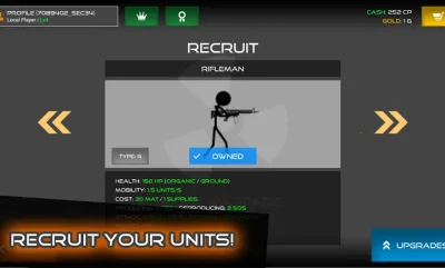 3、通过战斗赢取金币解锁升级单位,还有全局升级提升战斗效率,特色玩法丰富。