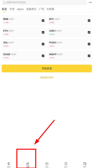 登录币安App,点击【交易】进入现货交易页面。