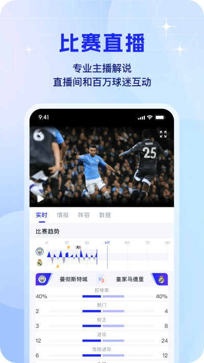 一款专为各大体育竞技迷推出的专业体育分析平台,该应用依托自身在技术手段和产品内容上的独特优势,全方位的为用户们提供全球超过130多个国家的足球篮球赛事比分直播、动画直播、赔率数据、球队资料信息,功能非常的强大。