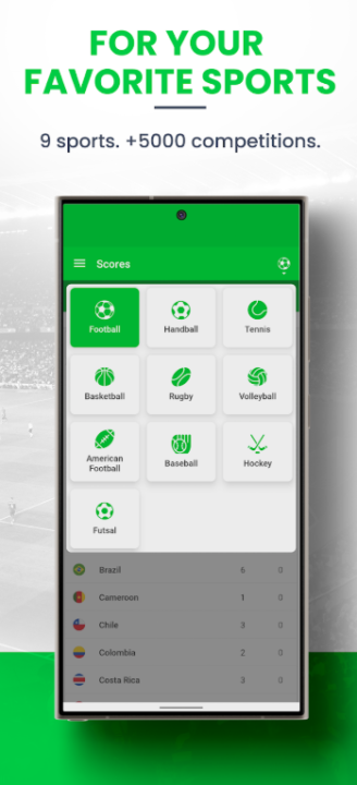 Skores即时足球比分软件下载官方版是一款专业的体育赛事比分查询工具,可实时追踪足球及另外8种运动的赛事动态,覆盖超过5000场国内外赛事,支持自定义进球及得分提醒,凭借极速更新的比分服务,让体育爱好者随时掌握赛事结果。