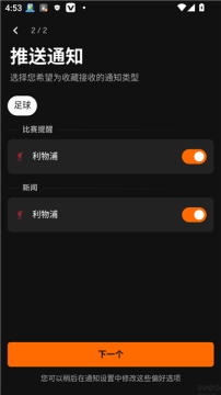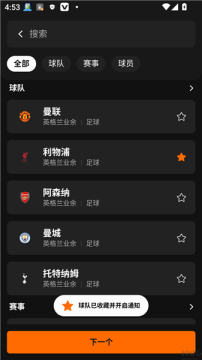 选择对应关注的球队后点击下一步