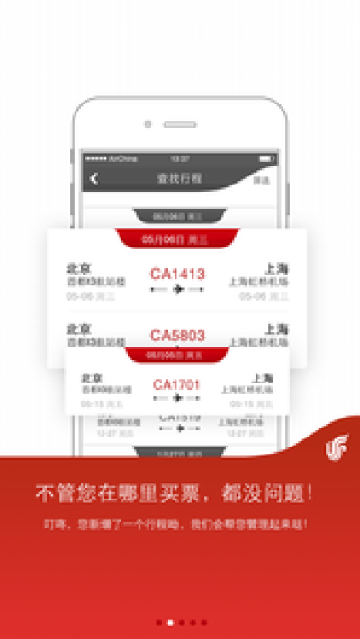 不管您在哪里购买的国航客票,不但可以查看自己的行程,还会有贴心的行程服务提醒。