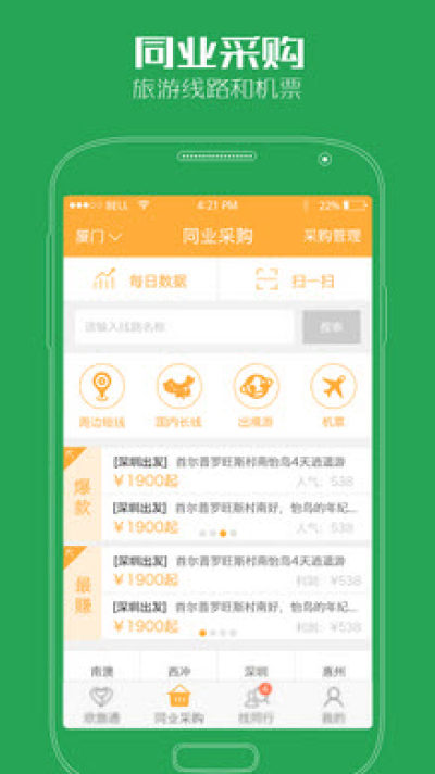 随时随地查看网店信息,网店接单更快捷;分销采购处理更简单;旅游顾问抢单更快速。