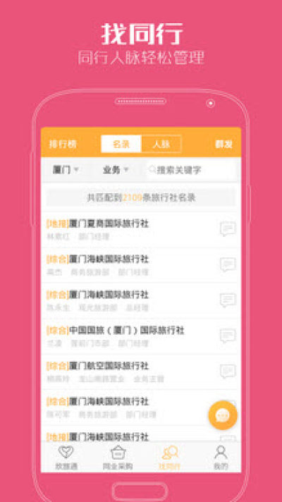 免费开通全国5万多家旅行社名录,同行人脉随心搜,在线交换名片,简单存入手机通讯录,人脉管理更简单。