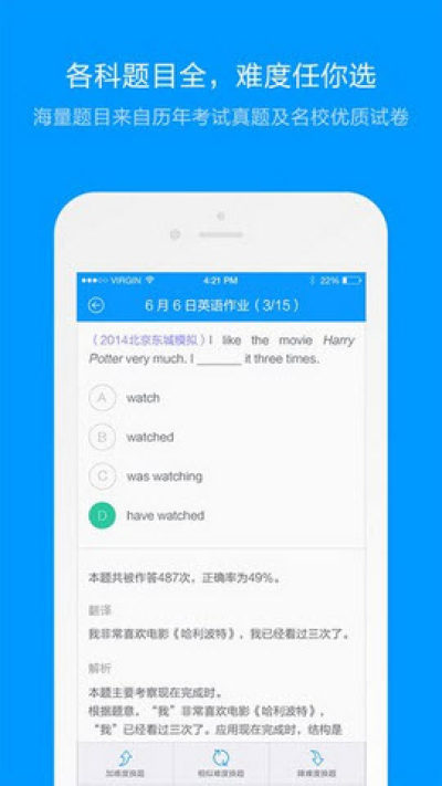 4.各科题目全,难度任你选:海量题目来自历年考试真题及名校优质试卷