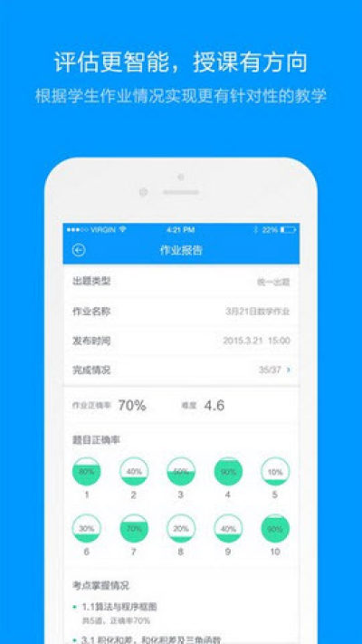 2.作业在线交,系统来批改:全面分析每一个学生对知识点的掌握情况