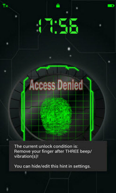 指纹解锁是一款手机解锁软件,将带给您一种超酷的解锁体验,软件通过用户指纹式样的扫描来解锁手机(由于当前手机硬件限制,无法真正识别用户指纹),扫描次数对应一次滴滴音或震动,扫描次数错误会出现"授权失败"字样,无法进入软件解锁。在安全性和娱乐性上相较于一般解锁软件有显著提高。