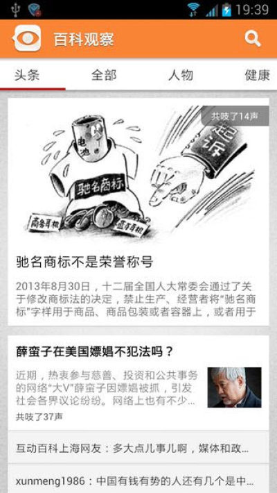 这是百科观察手机客户端,一款集新闻阅读和百科知识查询为一体的移动应用。紧跟社会热点事件,科学解读背景知识,并用知识影响媒体,放大功效,最终达到影响广大网友,促进知识传播的目的,充分发挥互动百科“知识媒体”的优势,承担知识传承的重任。用户可以共享平台登陆”第三方帐号包括人人网、新浪微博、腾讯微博。未登录用户可以发表文字评论,对别人的评论进行声援、声讨、分享。已登录用户可以修改密码、社区平台帐号绑定、发表语音吱声等!