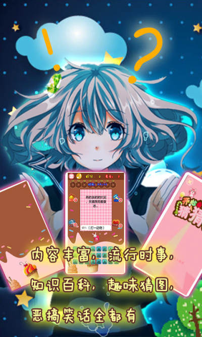 开心猜猜看中有字谜、爱情谜语、动物谜语、植物谜语、儿童谜语、搞笑谜语、甚至有音乐谜语等谜题等你来解答!不要限制自己的思路,带着谜语和脑筋急转弯的思路一起上路,才能轻松破解谜语哦!