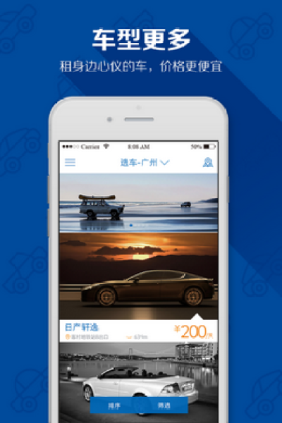 选择您所在的城市,搜索附近可租用的私家车,通过快快租车App查找您想租用的车型、价位,选择租车的日期,立即租用便完成整个租车的流程,关注快快租车,租客还有机会免费获得300元租车劵;
