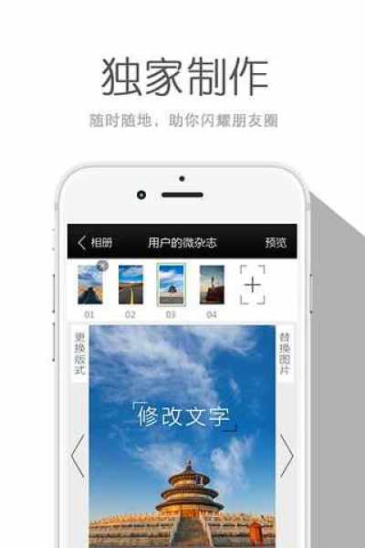 选上几张满意的照片,搭配精美的版式,附上动听的音乐,完成一册专属的ME微杂志。