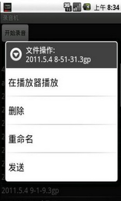 •发送录音文件通过蓝牙/邮件/DropBox/其它。