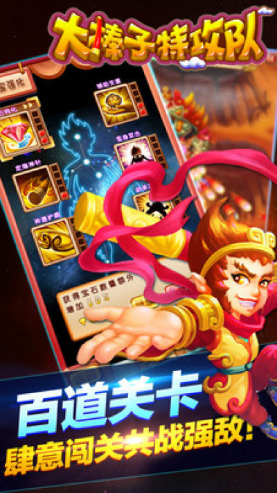 《大棒子特攻队》游戏以孙悟空大闹天宫,消灭天庭势力为题材。多种敌人与BOSS的设定,多个关卡的选择,多种道具的购买,让你回味无穷。再加上清新的画风、动听的音乐、流畅的手感等,让人欲罢不能。赶紧化身为齐天大圣,展开一段冒险之旅吧,我们都在等着你,最强的人会是你吗?