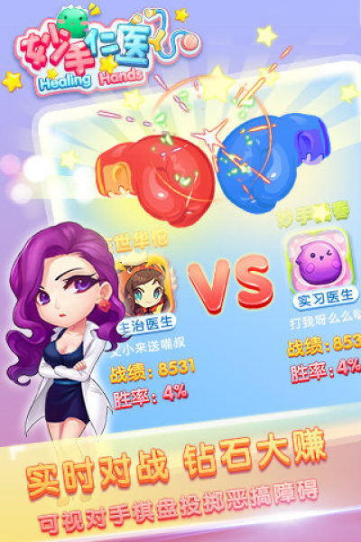 妙手仁医是一款由网易推出的情侣三消手游,游戏以医生为主题,各种新颖的医生关卡和Q萌的人物造型,让你根本停不下来,游戏交互性强,让你可以广交好友一起消除。