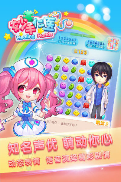 《妙手仁医》是网易首款情侣三消手游。新颖的医学主题关卡、Q萌的全语音剧情、独特的实时对战玩法,让你和他每分每秒都爱不释手。