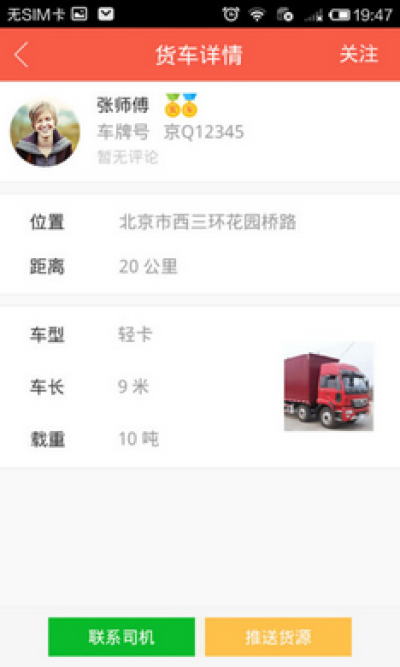 4.货单中,可实时定位司机位置,并增加关注司机功能。
