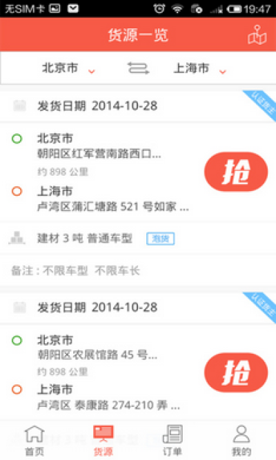 1.可以显示货源详细地址,可计算里程,送货更高效。