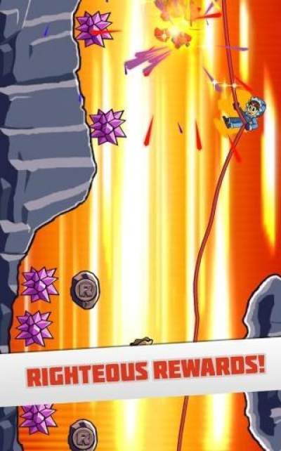 《激进速降 Radical Rappelling》是一款玩法新颖的敏捷游戏,这款游戏的灵感来自于一项极限运动:绳索速降,在游戏中有的场景同现实一样,玩家从山顶利用绳索不断向下降落,按住屏幕即可自动下降,但是如果不小心踩到带刺的水晶的话就会阵亡,是不是很有意思,感兴趣的玩家可以下载挑战一下,看你能速降多远吧!