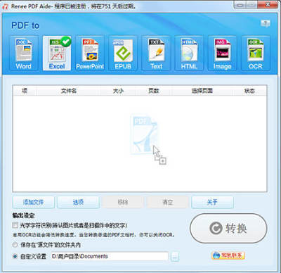 第一步:运行“都叫兽PDF转换”软件,界面如下:上面是需要把PDF转换为什么格式,中间是需要转换的文件的状态和设置,下面是转换工具的设置项,还有大大的转换按钮
