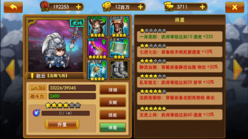 升星:武将升星就是提升武将的星级,每个武将都可以通过积累一定数量的武将将魂进行升星。武将最高可以升到6星,武将升星将提高武将的初始属性和成长。