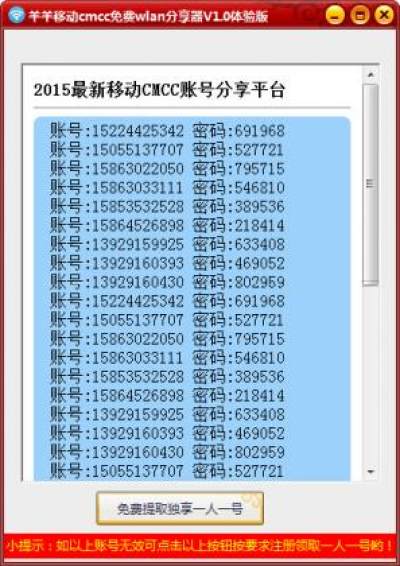 羊羊移动cmcc免费wlan账号分享器 v1.0 绿色免费版