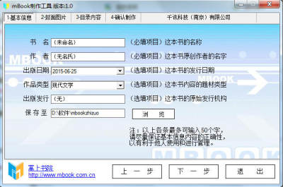 mbook制作工具是一款有南京千讯科技推出的支持一键式傻瓜操作的功能强大,小巧易用的免费电子书制作小工具。该软件操作简单,支持封面制作,可自动生成书籍封面,可以帮助用户把任意的TXT文档制作为掌上书院的电子文档UMD格式,让你更轻松就可以打造出属于自己的电子书籍。