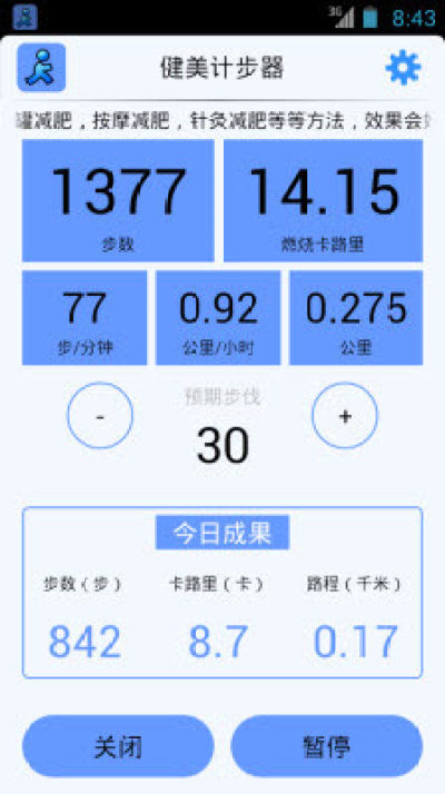 健美计步器是一个非常不错的手机减肥软件,其可以通过计算得出你在跑步训练过程中所消耗的卡路里,让你实时了解自己的运动成果。这款软件功能强大,对于想要通过运动锻炼来减肥的朋友来说非常有帮助,感兴趣的朋友可以试试看哟!