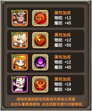 每位英雄上阵,可与其他未上阵英雄搭档。搭档英雄的被动技可共享给主英雄,自由组合被动技,定义英雄Buff!