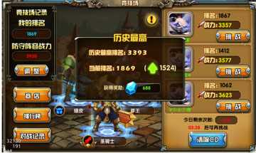 竞技场就是打架的地方咯,不然搞那么厉害有卵用,这里就是证明自己的地方,历史排名越高,拿到的钻石就越多,一直到排名第一所获得的钻石足足过万,就问你爽不爽!