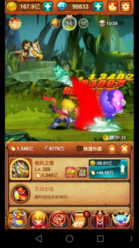 游戏中主角的战斗为全自动进行。主角招式丰富,光效华丽,AI自然,实现爽快流畅的演出效果。