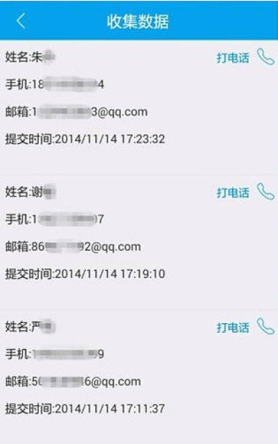 同时易企秀iOS客户端可以让用户通过手机查看到手机网页的访问量、潜在客户报名量,另外,用户可以通过客户端内置的分享功能,将手机页面分享到社交网络、邮箱、短信联系人,查看手机页面收集到的潜在客户联系方式,并可以直接拨打潜在客户的电话号码(前提是用户允许客户端调能拨打电话的功能)。