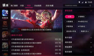 辣条游戏视频是一款为游戏爱好者量身定做的专业手机看游戏视频工具,汇聚了百万量级高清游戏视频,及最前沿的游戏资讯。按集锦、赛事、英雄、解说,攻略等分类,24小时不间断更新,让你体验最全最新的游戏高清视频;