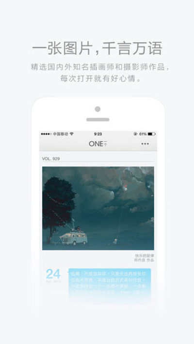 •一张图画,ONE团队每天从国内外优秀插画师和摄影师中精选一幅打动人心的作品。
