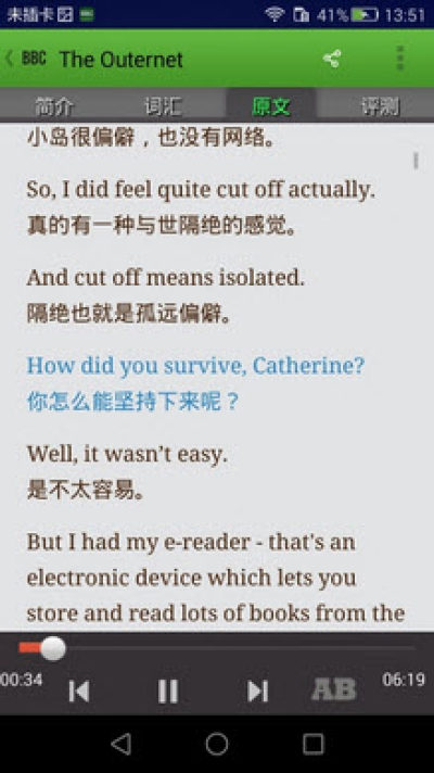 'BBC英语'是爱语吧最新推出的Android版英语学习应用,涵盖了英语学习的方方面面,堪称英语学习的'神器'。本款应用是我们爱语吧在总结前一款重量级应用'爱语吧VOA英语伴旅'的基础上,在功能、用户体验以及使用性能上都进行了全面提升,针对当前热门的BBC英语为广大英语爱好者打造的一款集合了'每周更新、自动跟读、屏幕取词、云端同步、支持下载、中英切换、记忆生词、生词查询、话题查询、附带习题、互动评论、微博分享'的良好使用体验的最佳英语学习工具,全面提升使用者的听力水平、口语能力、阅读能力、词汇量,为您学习英语注入无限活力!