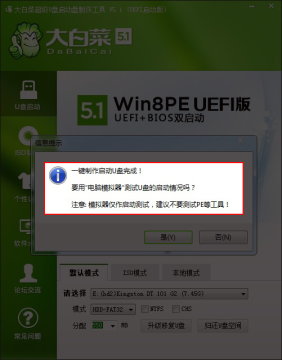 第二步:用大白菜U盘装系统软件制作启动U盘