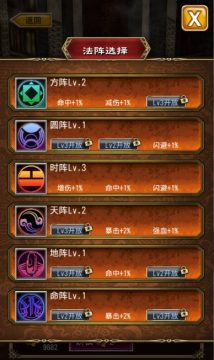 玩家可通过学习不同的法阵来加强队伍阵型的实力,每个法阵在三个阵位皆有不同的加成效果,可针对其特性强化伙伴的能力!!