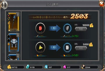 【铁匠铺】用于装备强化、宝石镶嵌、装备附魔、装备改造,是提升装备战力的主要途径,也可以查看到装备评级