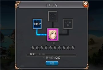 【进阶所】佣兵提升战力的地方,可进行佣兵升星。佣兵可通过使用经验卡或吞噬其他佣兵卡,获得经验值,提升星级后获得属性提升