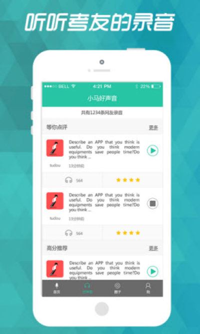 4.新增圈子用户互动环节,可以收听学霸好友的录音;