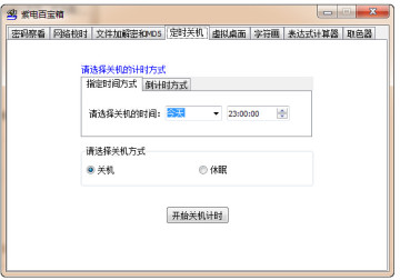 紫电百宝箱是一款功能多样的工具箱软件,集密码查看、网络校时、文件加解密和MD5、定时关机、虚拟桌面、字符画、表达式计算器、取色器等多种功能于一体,可以帮助用户解决日常生活工作中遇到的各类问题。
