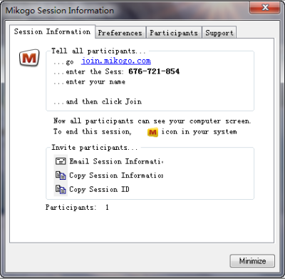 mikogo是一款功能强大的免费桌面共享工具,支持跨平台的远程桌面互联(Windows与Mac),体积小巧、可一次连接10入、传输效果好速度快,可限定共享的程序,并且能穿透局域网、防火墙。帮您实现无懈可击的网络会议。