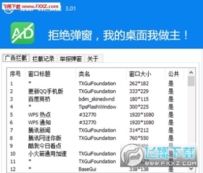 ad弹窗广告拦截器是一款最新的弹窗广告拦截工具,可识别出上万款广告软件,软件打开即可实现拦截,软件小巧便捷但是功能强大,能帮助大家拦截当前各类应用程序的广告,比如qq、微博、wps等常用工具。同时还支持强制结束进程,是一款非常有效的广告拦截软件!