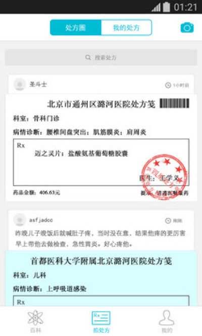 3.处方分享:分享手中的处方至“处方圈”,通过搜索处方,可发现更多高价值的处方。