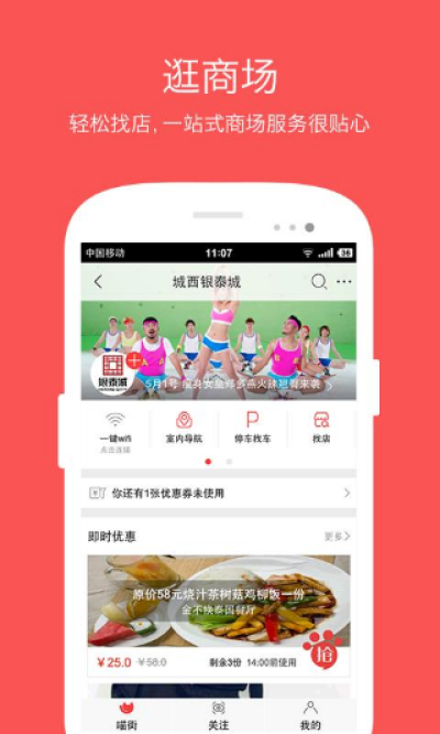 4.查看商场店铺优惠打折和新品信息,实时分享逛街体验。