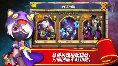 -独创的英雄玩法:游戏中超过20个各具特色的英雄等待各位领主的召唤,玩家通过招募、升级进阶、技能升级、刷新天赋打造自己的专属强力英雄。玩家带领英雄参加闯关副本、PVP掠夺战、竞技场证明自己英雄的实力。