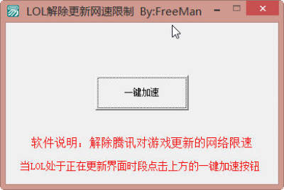 小编平时没事就喜欢玩下lol,但是每次更新的时候速度是非常的慢,小编家可是50M的光纤啊,怎么解决这个问题呢?小编今天在论坛发现一个lol提速工具,非常不错,速度瞬间就起来了,现在分享给大家。