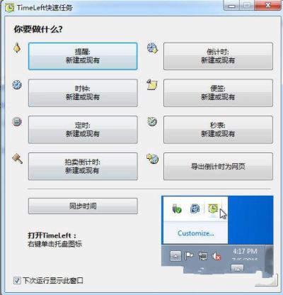 TimeLeft快速任务是一款基于Winamp而制作的用于windows环境下的功能强大,操作简单,绿色安全的定时任务工具,这款软件具有定时提醒、倒计时、时钟、便签、定时、秒表、拍卖倒计时、导出倒计时网页、同步时间等诸多功能。